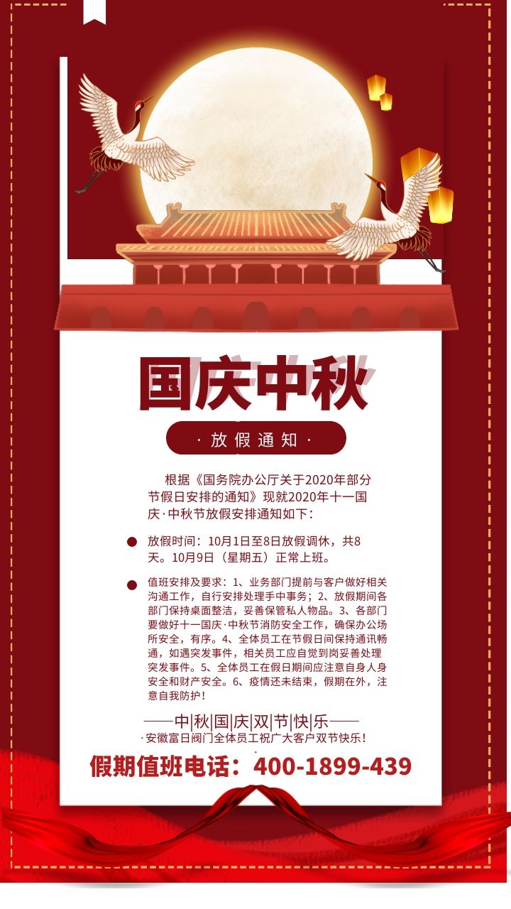 “國慶中秋成雙喜,花好月圓慶豐收”。安徽富日閥門公司全體同仁祝您:雙節快樂!