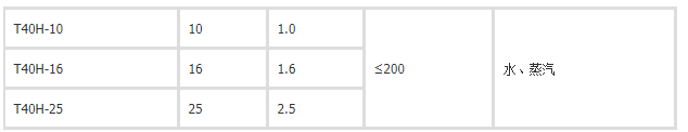 型號PN工作壓力/MPa適用溫度/℃適用介質
