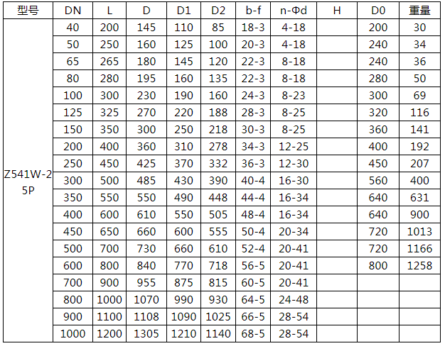 傘齒輪不銹鋼閘閥Z541W-40P相關連接尺寸: