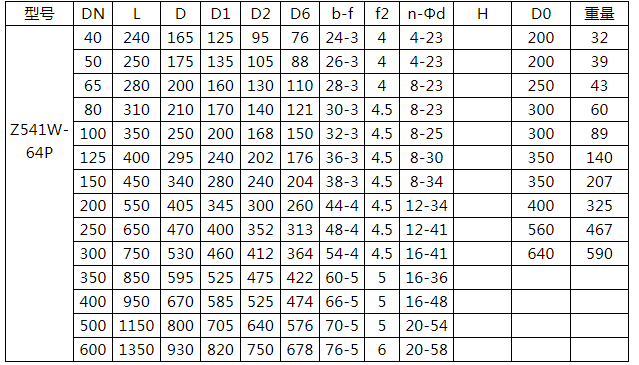 傘齒輪不銹鋼閘閥Z541W-64P相關連接尺寸: