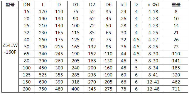 高壓不銹鋼傘齒輪閘閥Z541W-160P相關連接尺寸: